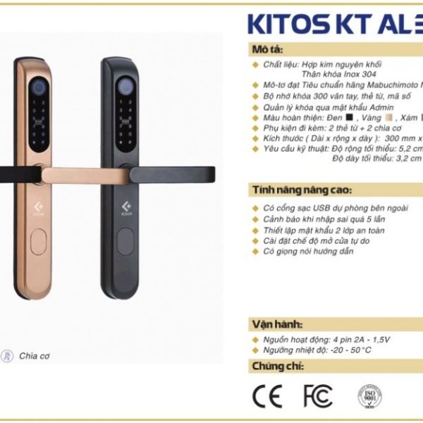 Thông số kỹ thuật của khóa cửa vân tay Kitos KT-A30: