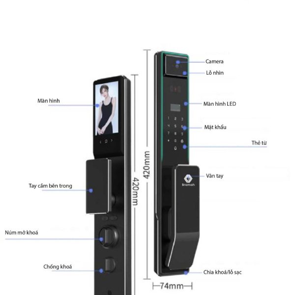 1.Thông số kỹ thuật của khoá cửa thông minh Bramah LX 980 PRO-3D face.