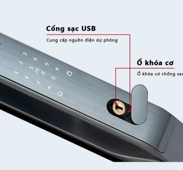 Nếu bạn không để ý và không kịp thời thay Pin cũng đừng quá lo lắng. Bởi nhà sản xuất đã thiết kế một cổng sạc dự phòng USB ngay trên thân khóa. Khi Pin hết bạn có thể sử dụng cổng sạc này để kích hoạt khóa hoạt động nhé.
