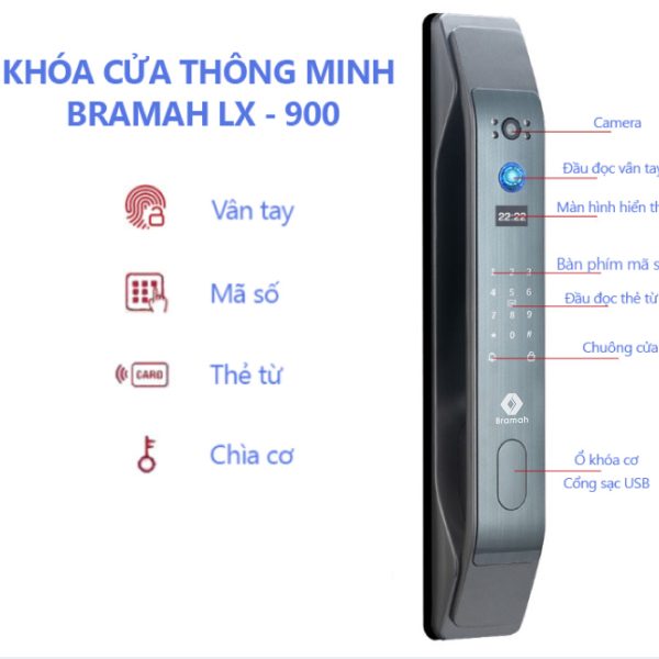 1. Tính năng sản phẩm khóa vân tay cửa gỗ Bramah- LX900:
