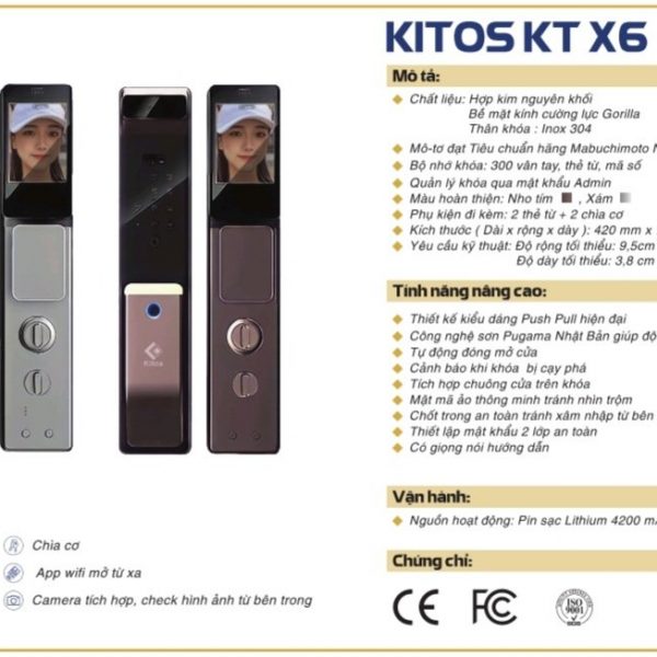 Kitos KT-X6 sở hữu 5 tính năng mở cửa thông minh: mở cửa bằng vân tay, thẻ từ, mã số, chìa cơ chống sao chép và đặc biệt là mở cửa từ xa qua App điện thoại.