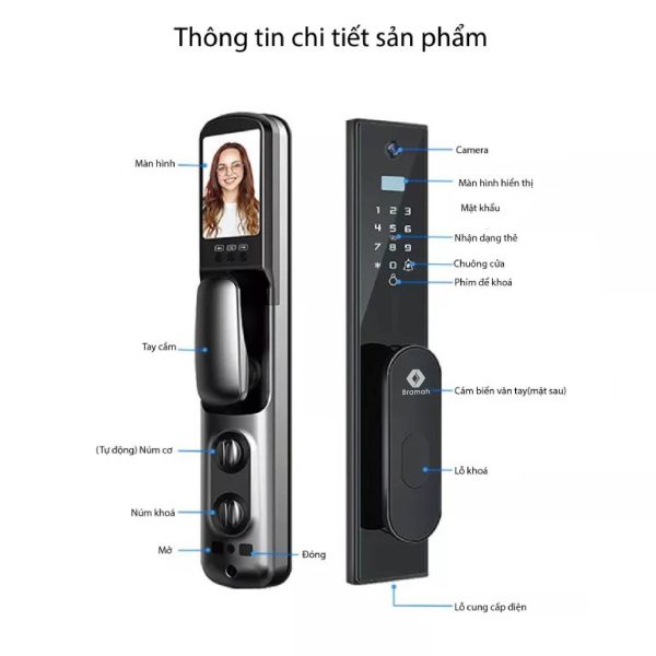 1. Thông số kỹ thuật khoá cửa thông minh tích hợp camera BRAMAH – LX930 plus.