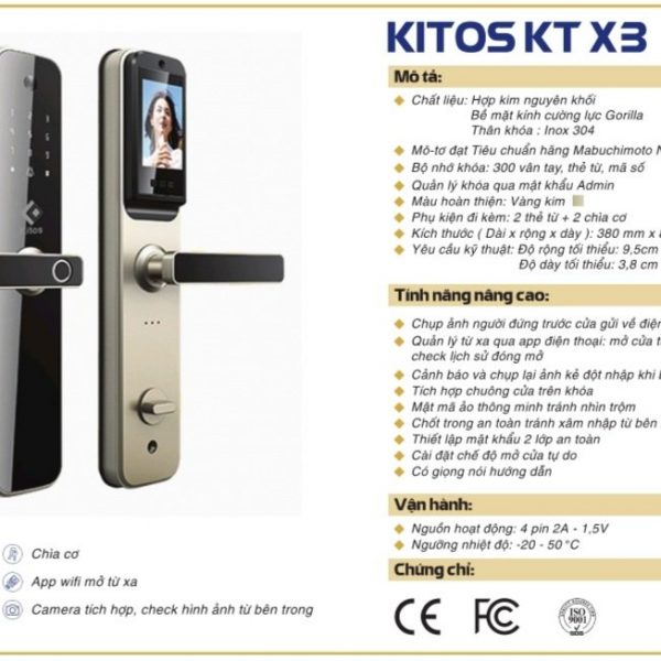 Khóa cửa vân tay tích hợp camera Kitos KT-X3 đang là sản phẩm được người tiêu dùng ưa chuộng nhất hiện nay không chỉ mẫu mã đẹp mà còn có nhiều tính năng thông minh khác.
